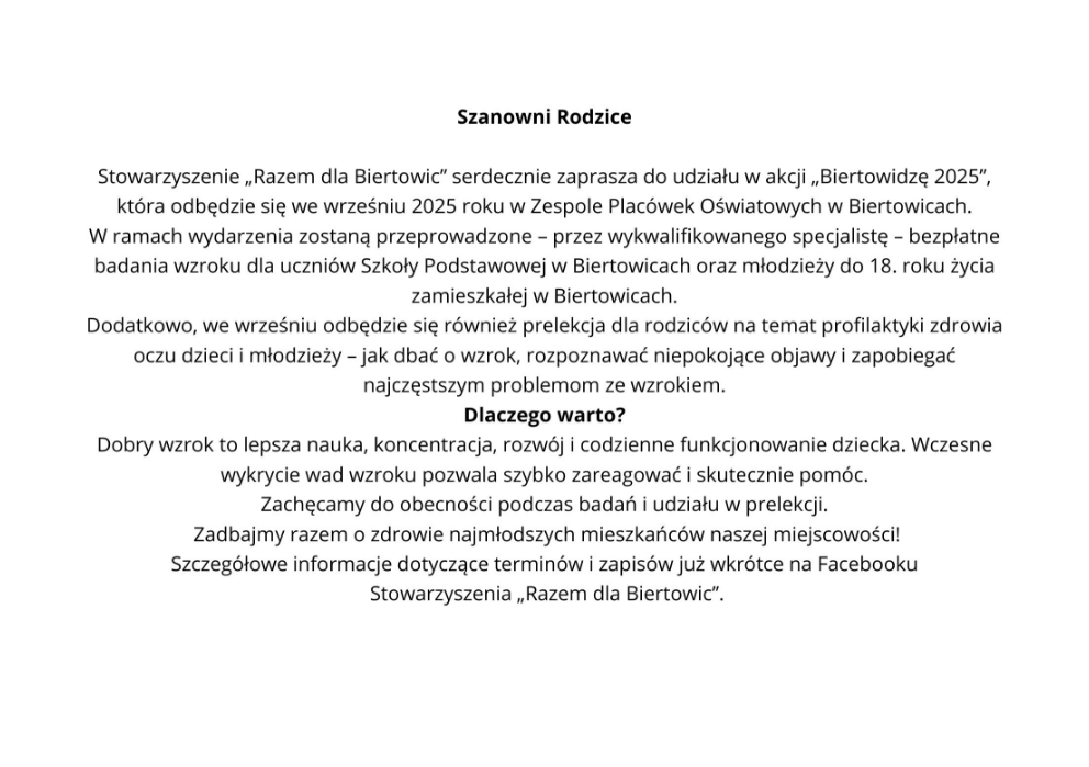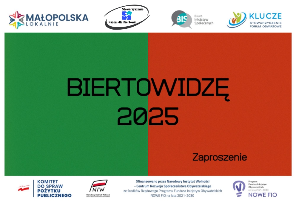 Biertowice Sołectwo Stowarzyszenie Razem dla Biertowic BIERTOWIDZĘ 2025 – informacja Pi Fi 2025-07-07 Continue Reading Previous: Kilka zdjęć z piknikuNext: BIERTOWIDZĘ 2025 – banery Related Stories Biertowice Parafia Sołectwo Sołtys Straż Życzenia Pi Fi 2026-04-02 Biertowice Parafia Sołectwo Sołtys Stowarzyszenie Razem dla Biertowic Straż Sulkowice ANKIETA Pi Fi 2026-03-03 Biertowice Parafia Sołectwo Sołtys Stowarzyszenie Razem dla Biertowic Podsumowanie pierwszego roku działalności Stowarzyszenia Razem dla Biertowic Pi Fi 2026-01-19